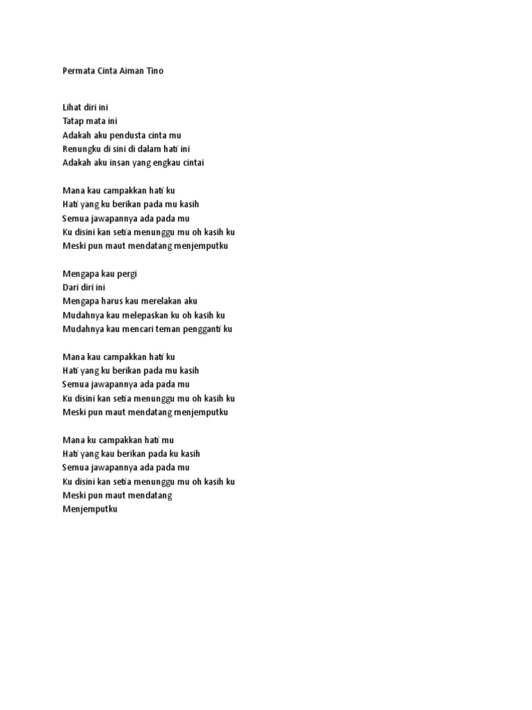 Hingga saat ini masih. Lirik Lagu Permata Cinta - Aiman Tino Berikut merupakan Lirik Lagu Permata Cinta - Aiman Tino. Adakah aku disana engkau.